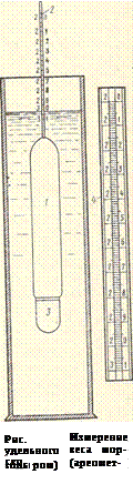 По глубине погружения (осадки) ареометра в жидкость, отсчитанной по шкале, определяется ее удельный вес (плотность). Счет делений на шкале идет сверху вниз, так как чем меньше удельный вес жидкости, тем ареометр больше погружается. Зная удельный вес морской воды, приведенный к температуре 17,5° по Океанологическим таблицам, можно определить и соленость данной пробы морской воды.