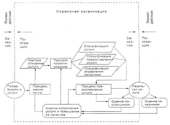 В соответствии с ИСО 9004 – 2-91 услуга – результат взаимодействия поставщика и заказчика и внутренней деятельности поставщика по удовлетворению потребностей заказчика. Требования к услуге должны быть четко выражены характеристиками, поддающимися определению и оценке заказчиком. Процессы, обеспечивающие предоставление услуги, также нуждаются в выражении характеристиками, которые не всегда могут быть определены заказчиком, но непосредственно воздействуют на исполнение услуги. Оба вида характеристик должны обладать способностью подвергаться оценке сервисной организацией на их приемлемость с помощью установленных стандартов.