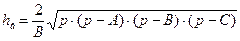 Пример: Вычислить высоты треугольника со сторонами А, В, С по формулам: