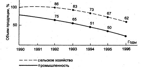 сельскохозяйственного производства в России в 1990-1996 гг.