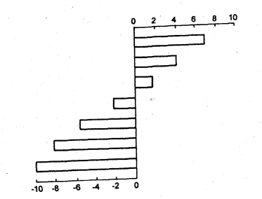 Диаграмма вида 7 может использоваться, например, для представления регионов с разной величиной и характером миграционного сальдо (положительным и отрицательным) предприятий, на которых повысилась и понизилась оплата труда, и т. д.