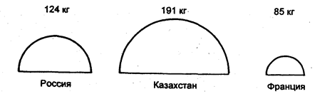 Рис. 9. Потребление хлебных продуктов на душу населения в 1994 г.