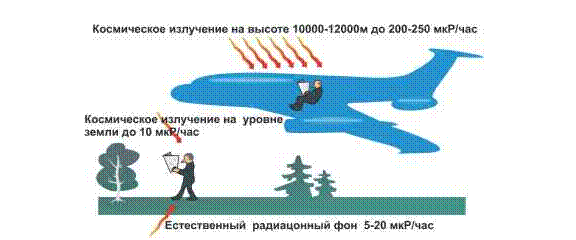 Радиационный фон, создаваемый космическими лучами, дает чуть меньше половины внешнего облучения, получаемого населением от естественных источников радиации. Космические лучи, в основном, приходят к нам из глубин Вселенной, но некоторая их часть рождается на Солнце во время солнечных вспышек. Космические лучи могут достигать поверхности Земли или взаимодействовать с ее атмосферой, порождая вторичное излучение и приводя к образованию различных радионуклидов.