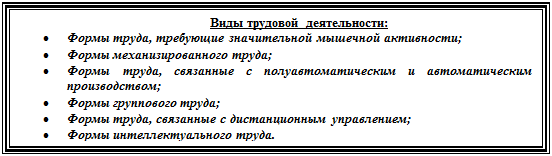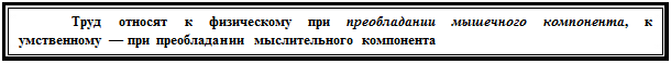 С этой точки зрения при работе учитывается или удельный вес мышечной нагрузки, или удельный вес одного из компонентов нервной нагрузки — мыслительного.