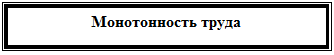 К монотонным видам труда относят такие, которые характеризуются следующими признаками: 1) высокая частота повторения трудовых действий; 2) непродолжительный временной цикл выполнения операций; 3) малоэлементный количественный состав операции; 4) структурное однообразие трудовых действий; 5) простота трудовых действий. Эти критерии относятся преимущественно к работам, где ведущую роль играет энергетический фактор, т. е. работа с выраженным физическим компонентом. Те же работы, где преобладает информационный фактор, т. е. требуется напряжение сенсорных механизмов и определенных психических функций, считают монотонными, если они: 1) связаны с длительным пассивным наблюдением; 2) имеют недостаток притока сенсорной информации; 3) имеют ограничение воздействия производственных сигналов и раздражителей.