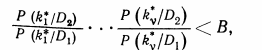 Обозначим вероятность ошибки первого рода α, второго рода β. Допустим, что имеются условия и принимается решение в пользу диагноза D2. Вероятность того, что это решение будет справедливым, равна 1— β. Вероятность принадлежности объекта с данной реализацией признаков к диагнозу D1 составляет α. С другой стороны, в силу соотношения вероятность диагноза D2, по крайней мере, в А раз больше, чем диагноза D1 т. е.