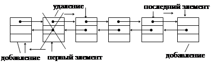 Рис.1.10. Организация дека с ограниченным выходом на основе двусвязанного линейного списка