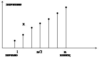 Основная идея – выбрать случайно некоторый элемент, предположим am, и сравнить его с аргументом поиска x. Если он равен x, то поиск заканчивается, если он меньше x, то делается вывод, что все элементы с индексами, меньшими или равными m, можно исключить из дальнейшего поиска; если же он больше x, то исключаются индексы больше и равные m. Выбор m совершенно не влияет на корректность алгоритма, но влияет на его эффективность. Очевидно, что чем большее количество элементов исключается на каждом шаге алгоритма, тем этот алгоритм эффективнее. Оптимальным решением будет выбор среднего элемента, так как при этом в любом случае будет исключаться половина массива.