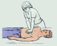 | Массаж сердца - механическое воздействие на сердце после его остановки с целью восстановления его деятельности и поддержания непрерывного кровотока до возобновления работы сердца. Показаниями к массажу сердца являются все случаи остановки сердца. Сердце может перестать сокращаться от различных причин: спазма коронарных сосудов, острой сердечной недостаточности, инфаркта миокарда, тяжелой травмы, поражения молнией или электрическим током и т.д. Признаки внезапной остановки сердца - резкая бледность, потеря сознания, исчезновение пульса на сонных артериях, прекращение дыхания или появление редких, судорожных вдохов, расширение зрачков. | |
