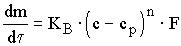где B- коэффициент массоотдачи; Cp- концентрация насыщения; C- концентрация пересыщения; F поверхность кристалла.