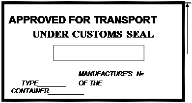 Рис.6. Табличка о допущении перевозок грузов под таможенными печатями и пломбами (на английском языке)
