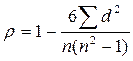 4) Вычислить коэффициент корреляции рангов по формуле:
