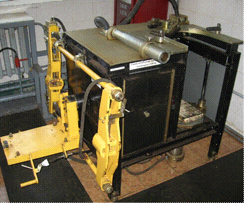 Предназначен для испытания тормозных тяг грузовых вагонов. Занимает минимум места – длина около 5 метров, ширина 30-40 см.