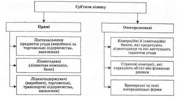 — прямий — коли лізингодавець купує майно у виробника і передає його в оренду;