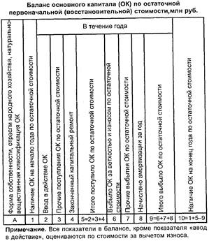 Баланс основного капитала представляет собой статистическую таблицу, данные которой характеризуют объем, структуру, воспроизводство основного капитала по экономике в целом, отраслям и формам собственности.