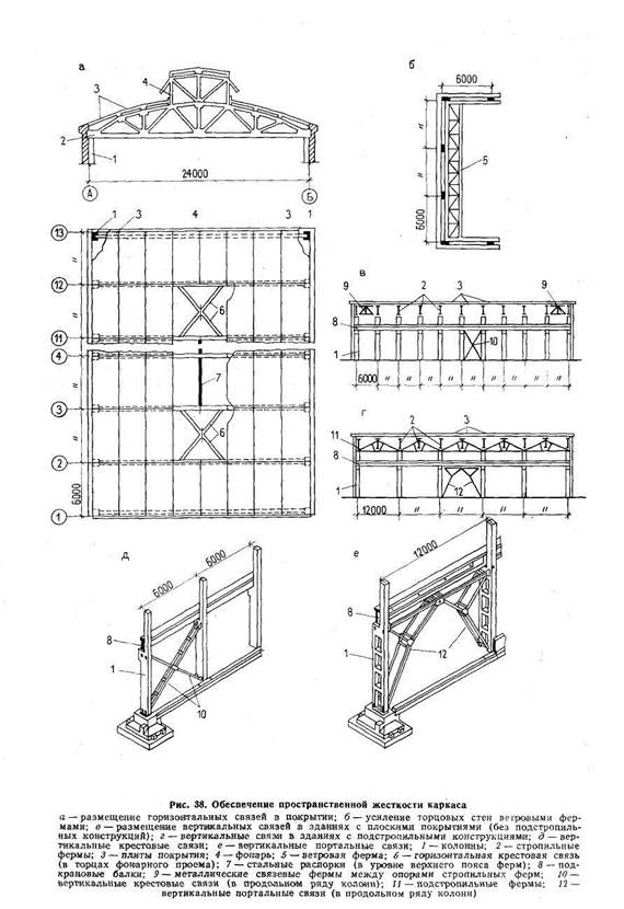 Горизонтальные и вертикальные связи являются ответственными элементами каркаса, обеспечивающими неизменяемость и жесткость здания.