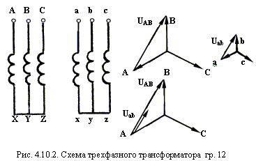 ГОСТ ограничивает применение только двух групп: Y / Y - 12 и Y / - 11. В качестве примера рассмотрим схему Y / Y - 12 (рис. 4.10.2).