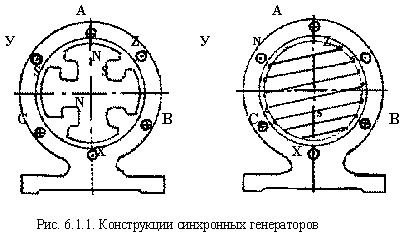 На рис. 6.1.1 приведены две конструкции генераторов, с тихоходным и быстроходным ротором.