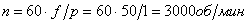 Водяной поток вращает ротор генератора с частотой n = 33,3 об / мин. Задавшись частотой f = 50 Гц, определим число пар полюсов на роторе: