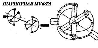 Шарнирные муфты соединяют валы под углом до 45о, позволяют создавать цепные валы с передачей вращения в самые недоступные места. Всё это возможно потому, что крестовина является не одним шарниром, а сразу двумя с перпендикулярными осями.