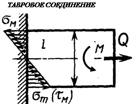 Тавровые и угловые швы соединяют элементы в перпендикулярных плоскостях. Выполняются либо стыковым швом с разделкой кромок (а), либо угловым без разделки кромок (б). При нагружении изгибающим моментом и силой прочность соединения оценивают: