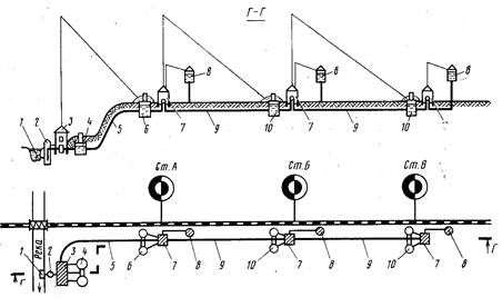На рис. 4 приведена схема водоснабжения с продольным водопроводом.