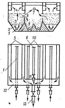 Рис. 46. Устройство открытого скорого однослойного фильтра: