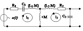 Структура уравнений подсказывает структуру схемы цепи, в которой индуктивности контуров равны (L1 –M) и (L2 –M) соответственно, а элементом связи – индуктивность – M.