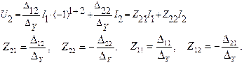 Решая систему относительно напряжений U 11 и U 22, получим уравнения в системе Z– параметров.