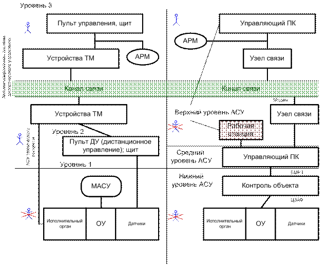 При традиционном варианте уровень 3 соответствует пункту диспетчерского управления, оснащенному системой телемеханического управления и аппаратура телемеханического управления, размещенная на тяговых подстанциях. Уровень 2 соответствует щиту управления подстанции и пультам дистанционного управления разъединителями. Уровню 3 соответствует аппаратура шкафов управления присоединений, содержащая релейную защиту, автоматику РЗиА и кнопки местного управления. Другими словами, под уровнем 3 будем понимать местную автоматическую систему управления присоединением МАСУ.