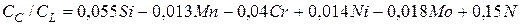 где Si, Mn, Cr и т.д – содержание легирующих элементов в стали, %.