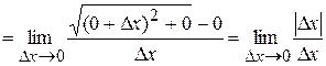 непрерывна в точке О(0; 0), но не имеет в этой точке частных производных. Действительно,