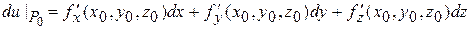 Определение полного дифференциала легко обобщается на случай функции любого числа переменных. Например, полным дифференциалом функции трех переменных