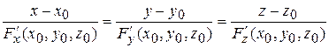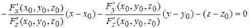 Решение. Уравнение поверхности задано неявно. Вычислим частные производные функции в точке