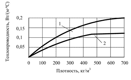 Теплопроводность материала связана с его плотностью (рис. 12).