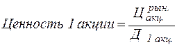 Ценность акции рассчитывается как частное от деления рыночной цены акции на доход (прибыль на 1 акцию) и отражает взаимоотношения акционеров и компании.
