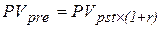 Приведенная стоимость денежного потока постнумерандо PVpst в общем случае рассчитывается по формулам:
