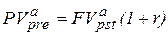 настоящая (приведенная) стоимость аннуитета пренумерандо может быть найдена по формуле: