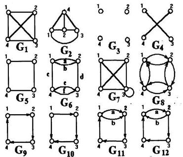 Пример 2. На рисунке 2.5 изображены графы G1- G12 с четырьмя вершинами в каждом. Сравнить графы.