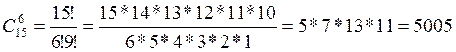 Решение. Число игроков волейбольной команды равно шести. Значит, число всех возможных вариантов - это число различных подмножеств, состоящих из шести элементов в множестве из пятнадцати элементов. Следовательно,