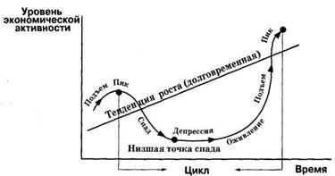 Цикл представляет собой интервал времени в развитии экономики, в течение которого происходит увеличение объема производства товаров и услуг, а затем сокращение, спад, депрессия, оживление и, наконец, снова его рост.