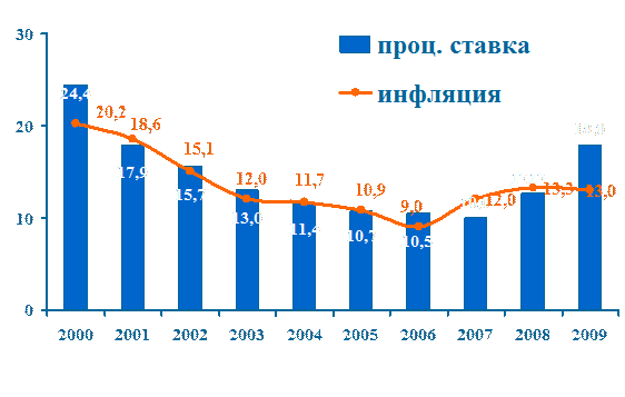 Рисунок 7 – Средневзвешенные процентные ставки по кредитам, предоставленным нефинансовым организациям (%)