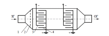 1 – корпус; 2 – бункер; 3 – штуцер для видалення пилу