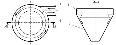 1 – кільцевий жолоб; 2 – осаджувальний конус;