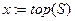 Обозначим стек для открытых вершин через S, а верхний элемент стека – через