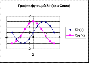 Примечание. Можно строить одновременно несколько графиков функций. В рассмотренном примере графики функций Sin(x) и Cos(x) строятся по очереди в учебных целях.