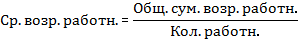 | Возраст | Кол. работн., чел | Средний возраст x’, лет | Общий суммарный возраст х’m, лет | | |