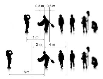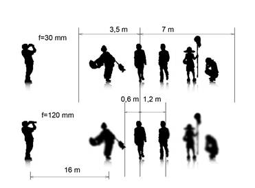 В зависимости от фокусного расстояния объектива, задний план может быть приближен к объекту съемки, либо удален от него. Если при съемке модели находятся на разном удалении от фотографа, то телеобъектив визуально уменьшит расстояние между ними, а широкоугольный объектив увеличит.