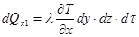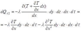 Разница подведенного и отведенного тепла в элементарный объем, за счет теплопроводности, в направлении оси х будет равным: