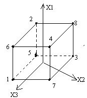 Факторное пр-во представляется в виде нормированного куба. Опытные точки выбираются в вершинах куба. Каждый опыт проводится не менее 2 раз. Из матрицы из рисунка видно, что последовательность опытов выбрана случайным образом в пр-ве. Т.к. каждый опыт занимает определенное время, то опыты рандомизированны и во времени. После проведения опыта с использованием метода наименьших квадратов, определяются коэф-ты регрессивного у-ния. После получения пар-ров, т.е. коэф-в производится оценка адекватности модели, которая оценивает точность определения по данному у-нию отклика и значимости коэф-в.